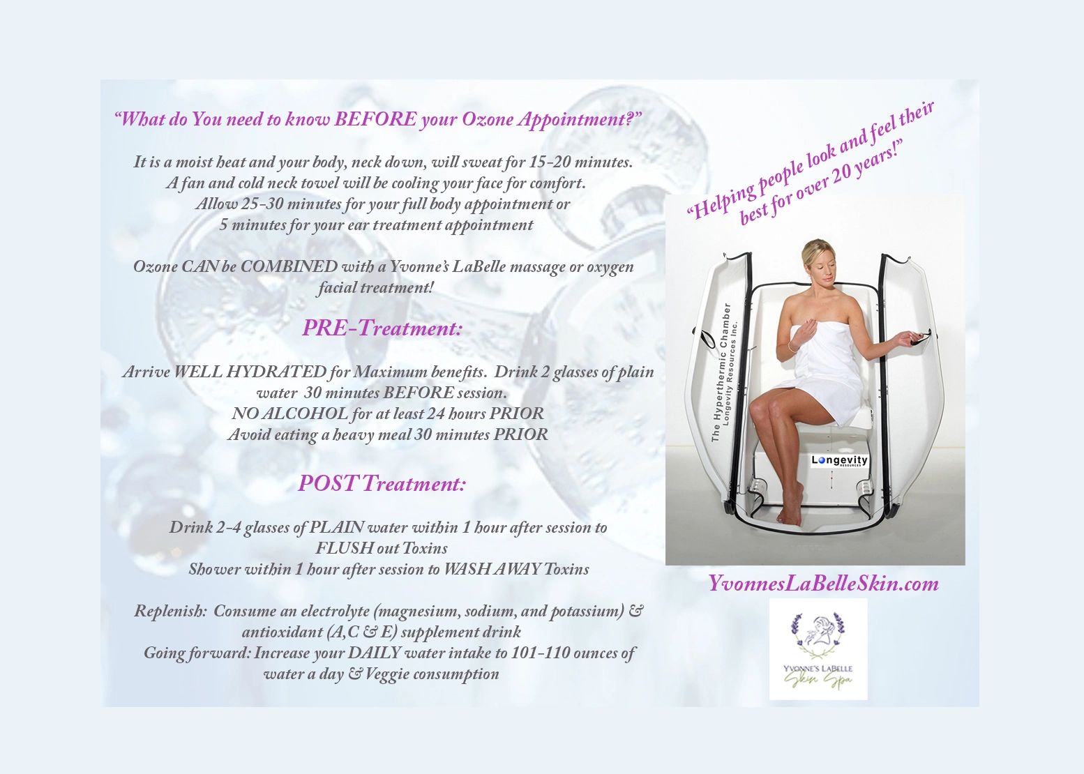 For the ULTIMATE “TRIFECTA” Experience schedule a FACIAL + OZONE (Full Body) Sauna + Massage!!! SAVE 20% OFF a Full Body Ozone Sauna session when combined with a facial and/or massage!